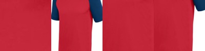 - Contrast color three-quarter sleeves and three-eighths inch neck binding