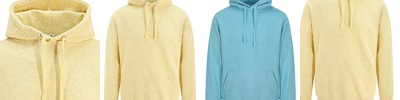 280 gsm, 70% ringspun cotton, 30% polyester; Front pouch pocket;