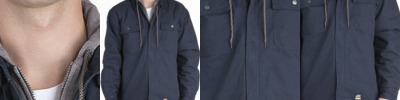 - Detachable hood with metal snap buttons