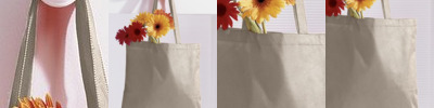 100% cotton canvas; Self-fabric handles; 10.25"W x 13.5"H x 5"D;