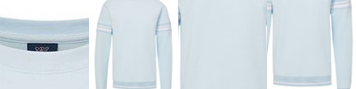 - Ragan armhole seams with contrast stitching