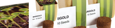 - Each set includes a biodegradable planter, a compressed soil wafer and a marigold seed packet