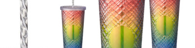 TM001 b.free Rainbow Pride 22oz Sparkle Straw Tumbler