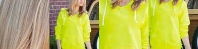 - Unlined hood with contrast drawcord